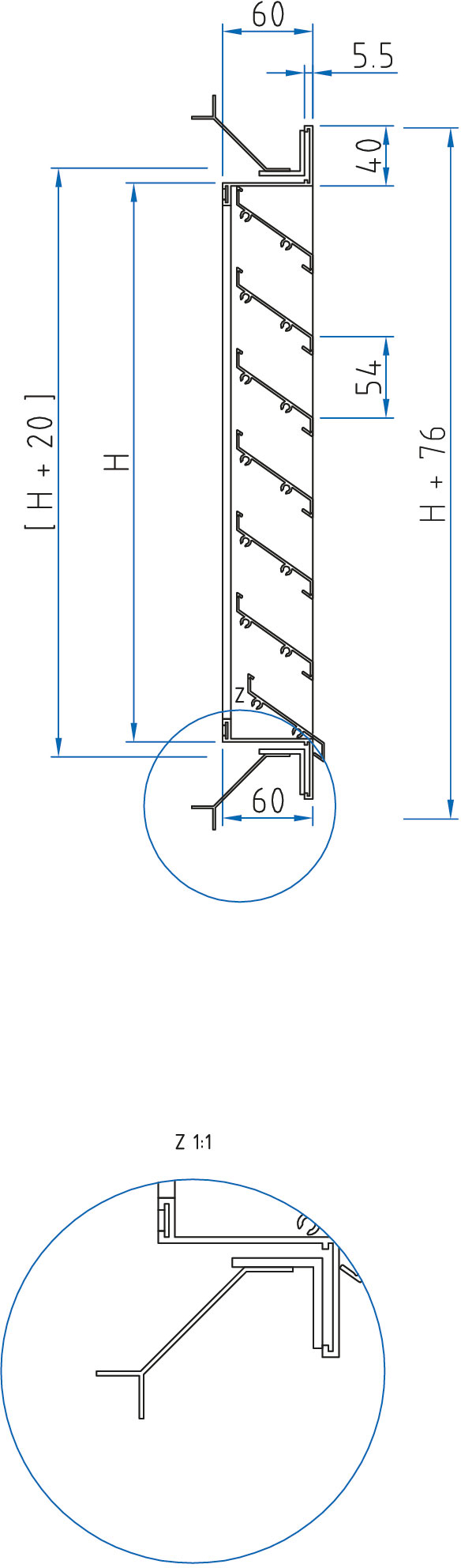 - Rahmen und Lamellen aus Aluminium natur eloxiert E6/EV1